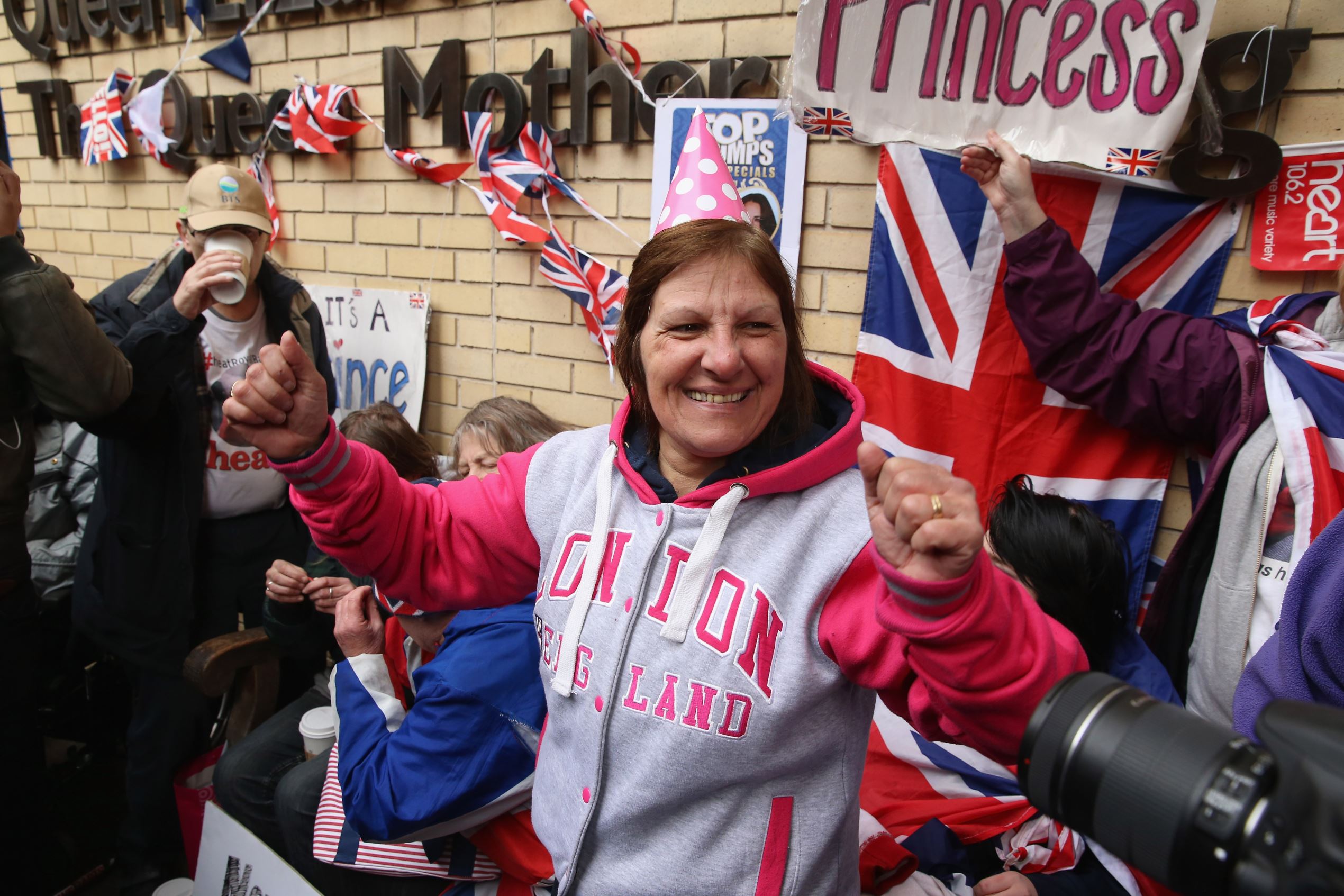 Royal fans celebrate the birth of Prince William and Kate's second child.