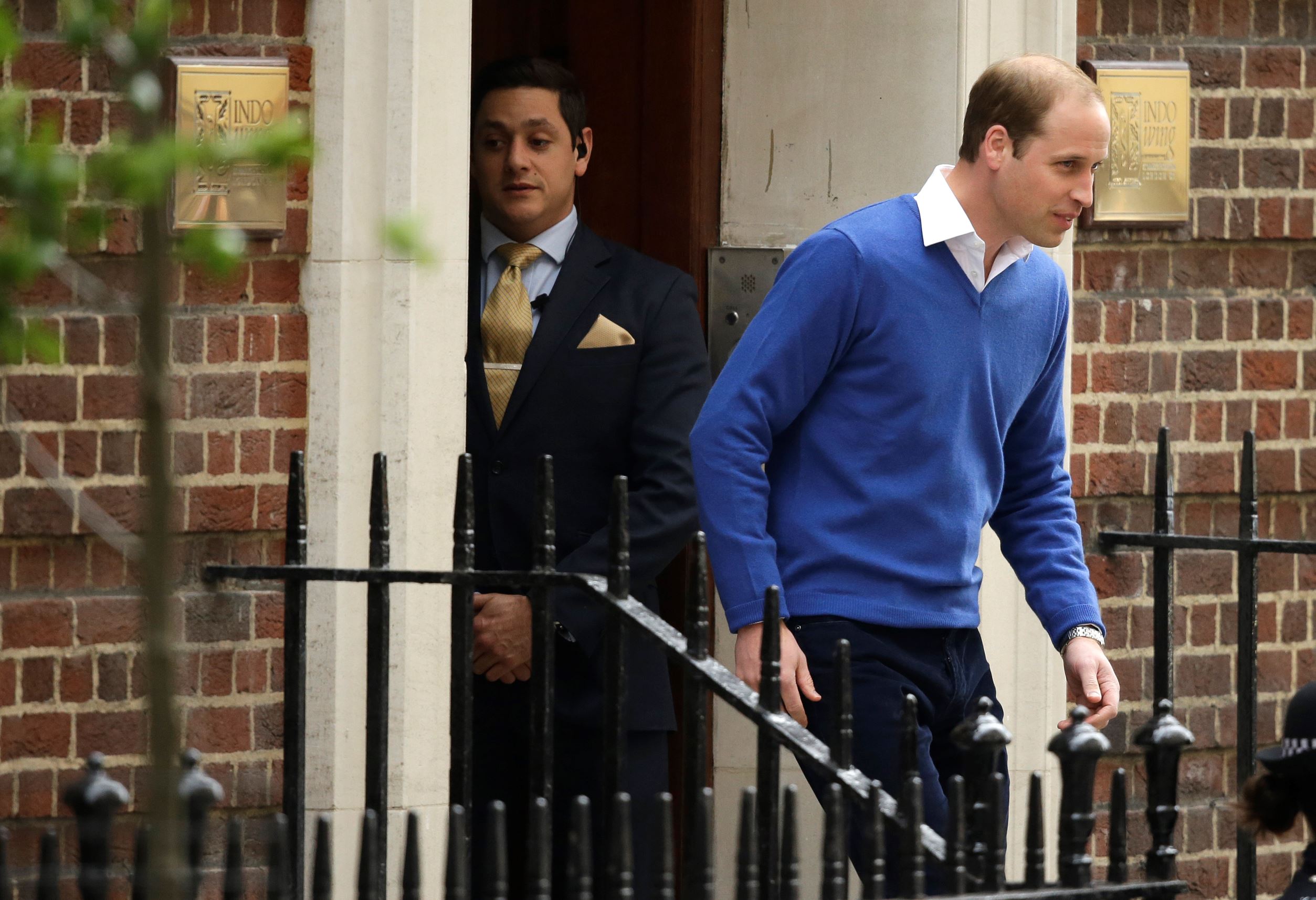 Britain's Prince William leaves St. Mary's Hospital's Lindo Wing.