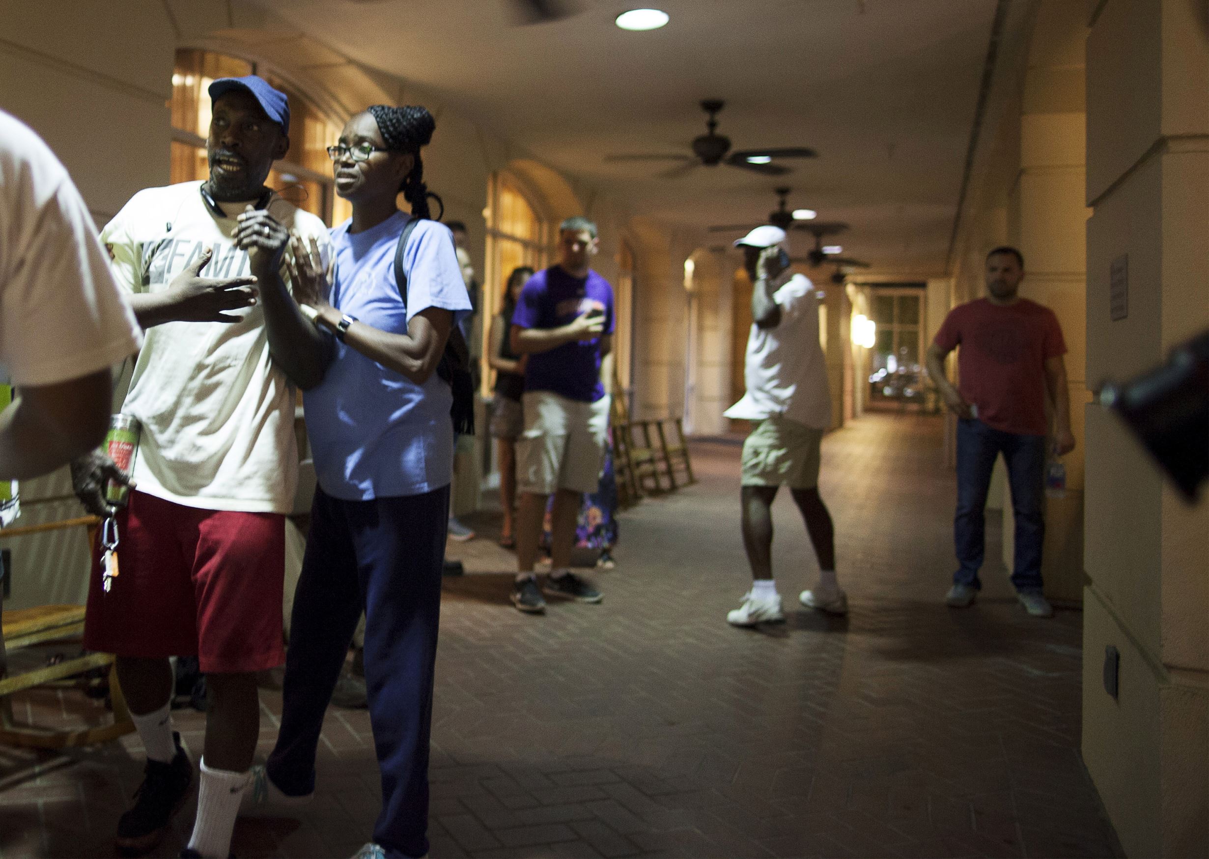 People concerned about relatives seek information from police nearby the scene of a shooting at the Emanuel AME Church in Charleston, South Carolina, June 17, 2015.