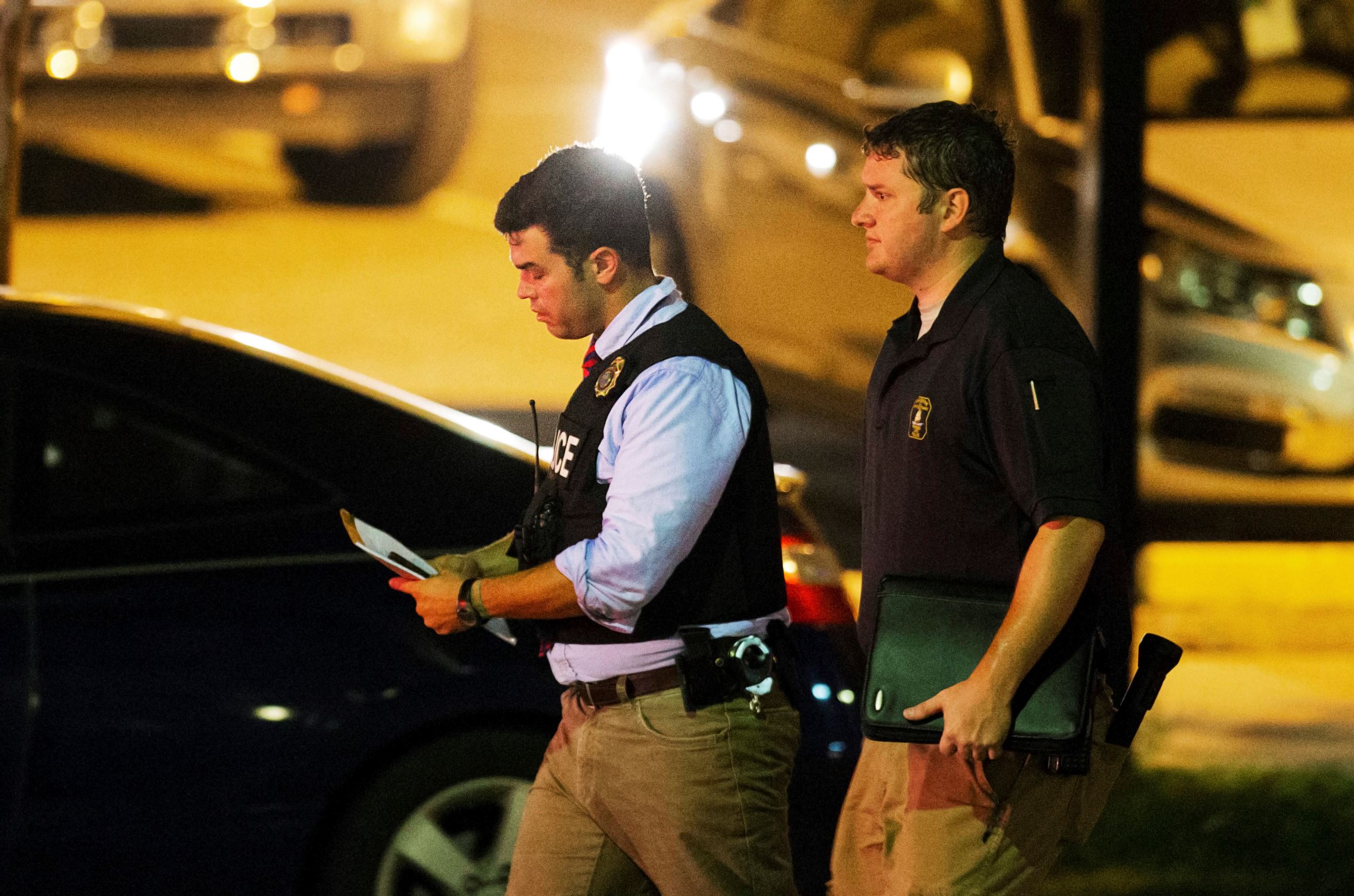 Police walk down the street from the Emanuel AME Church following a shooting in Charleston, S.C., June 17, 2015.