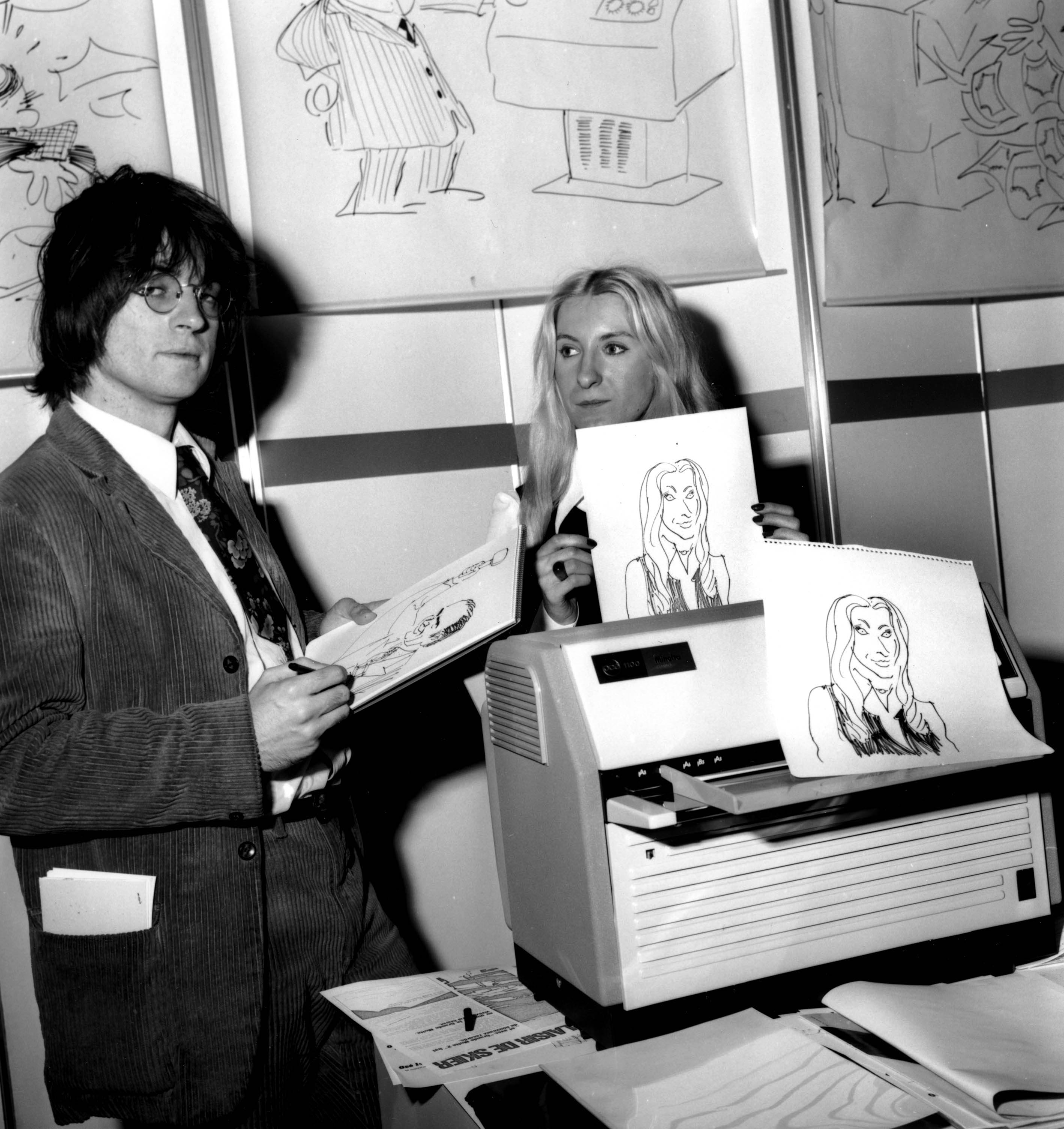 file picture of Cabu testing a photocopier at a trade show in 1971.