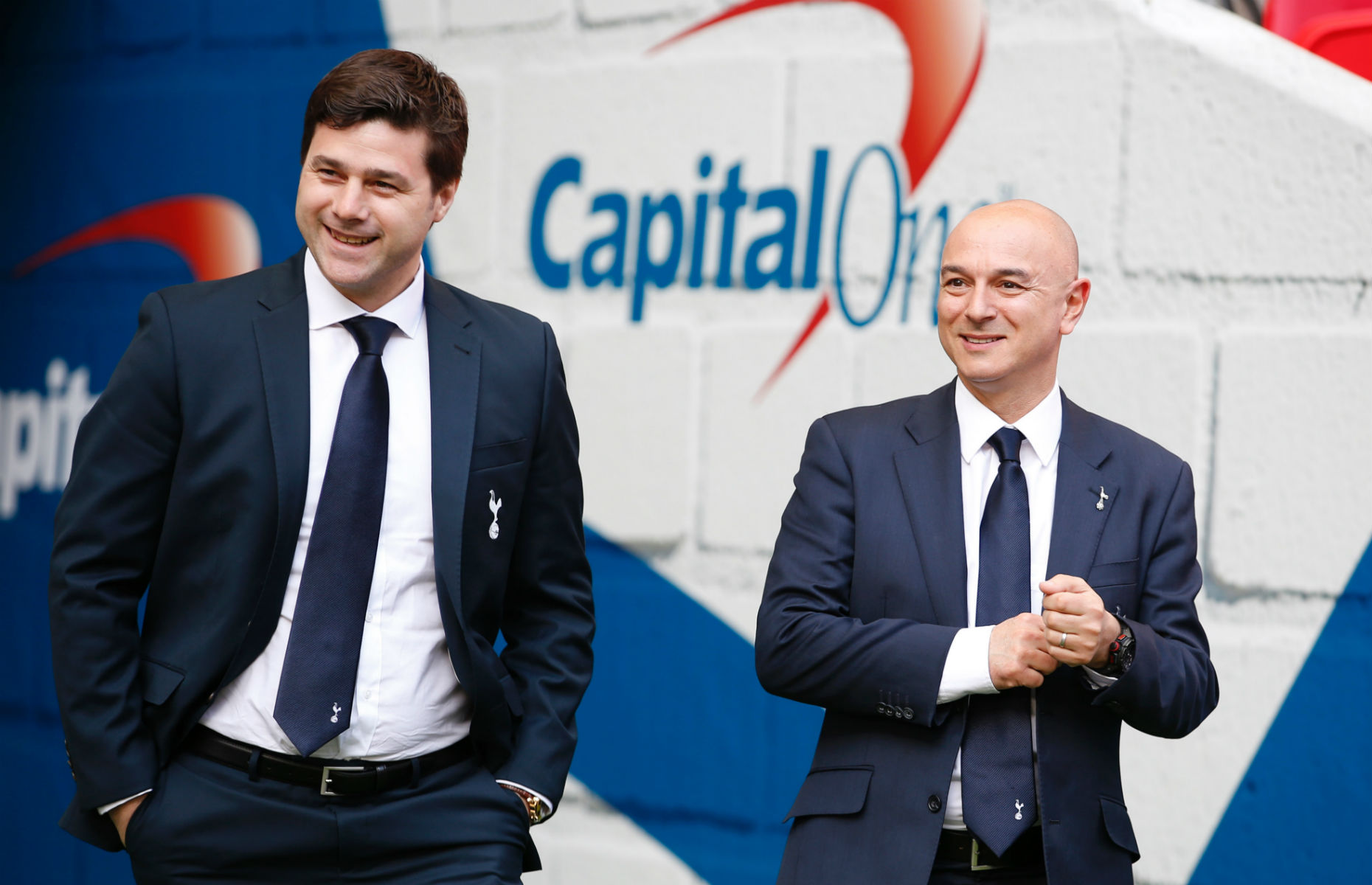 Tottenham manager Mauricio Pochettino and chairman Daniel Levy make their way down the tunnel at Wembley