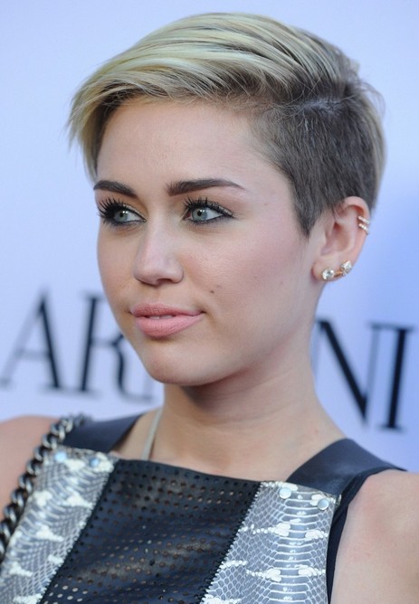 Miley Cyrus Short Hairstyle – Deep side parted short straight pixie cut