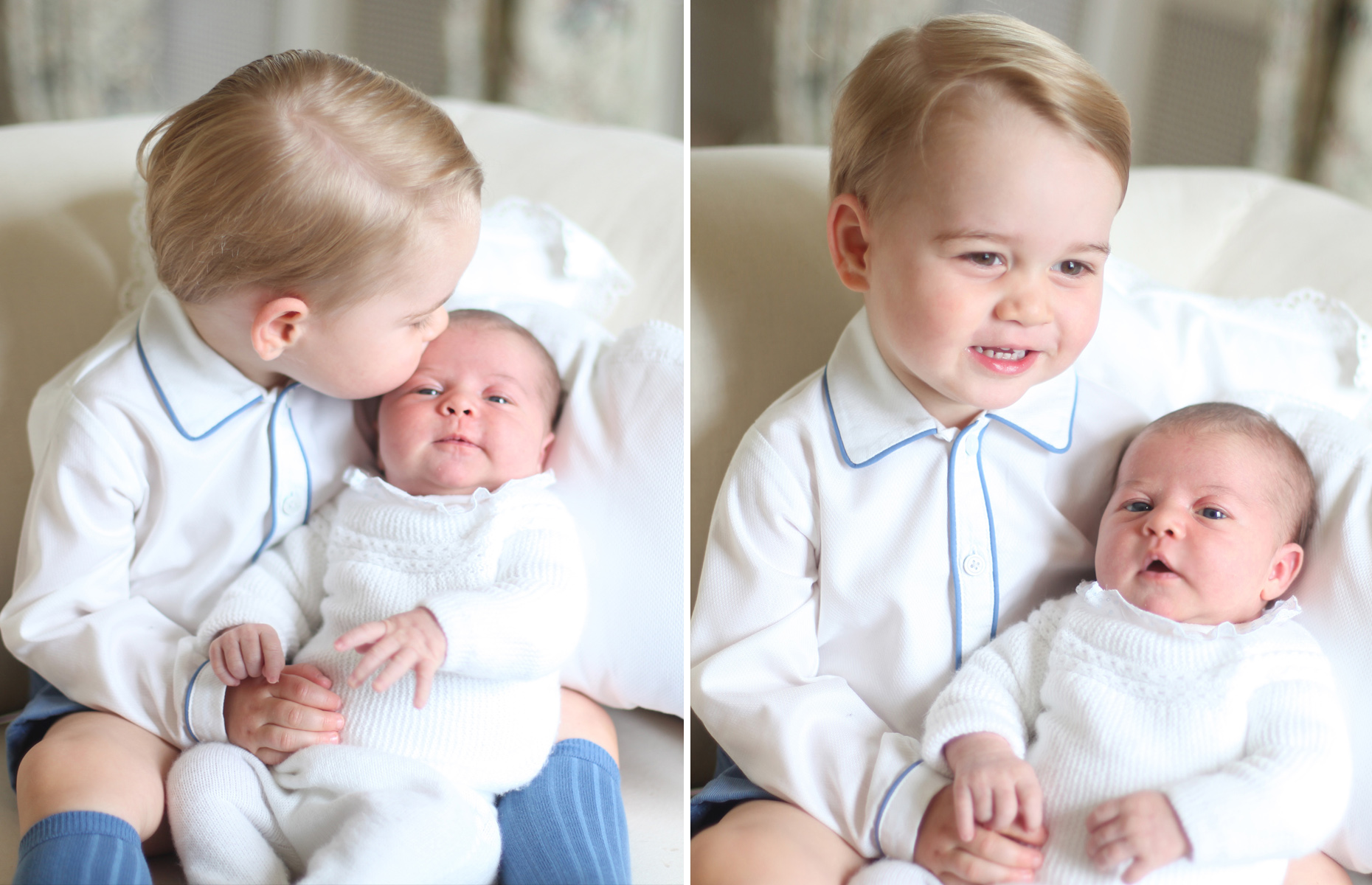 First frame: Prince George poses with sister Charlotte