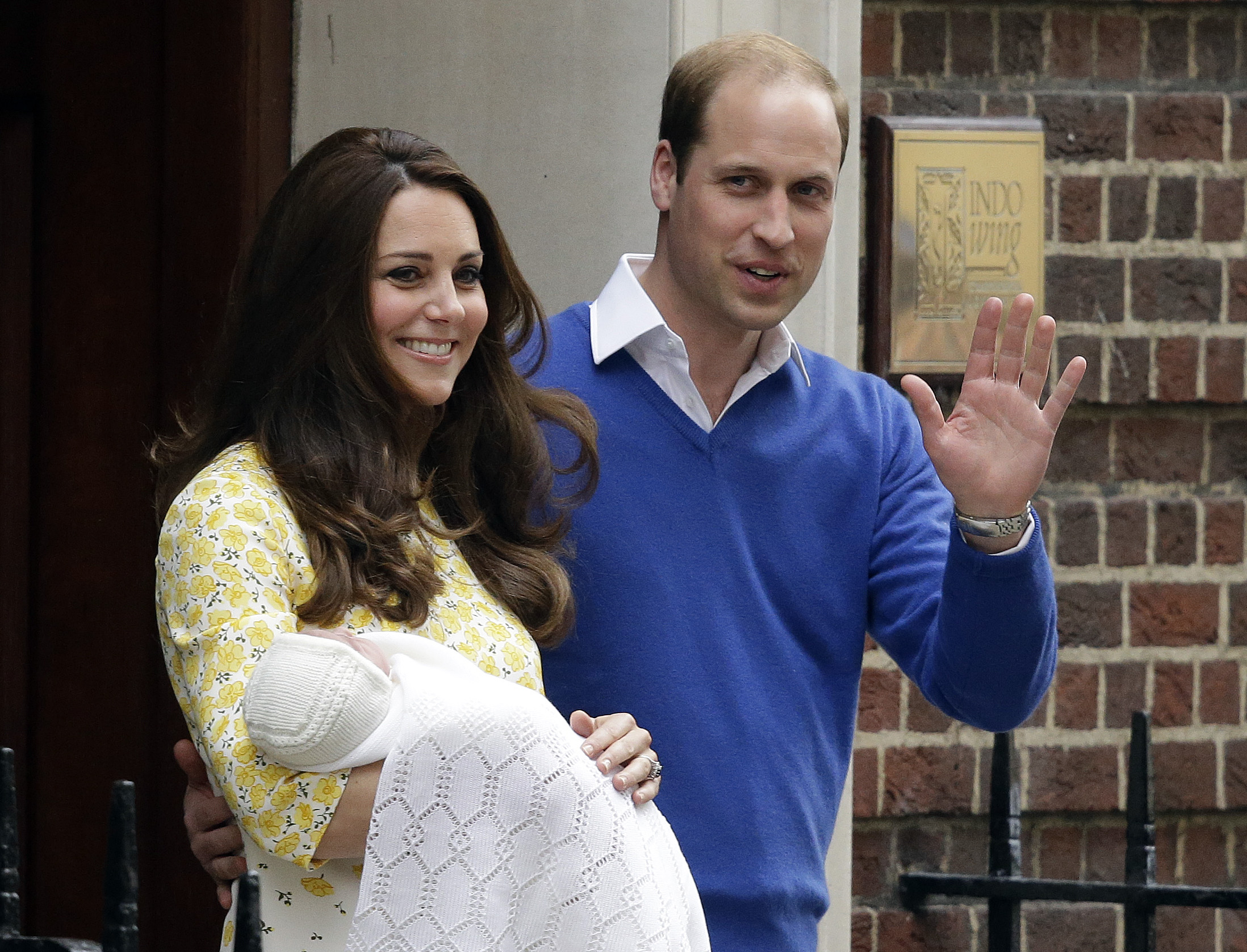 Britain's Prince William and Kate with their daughter outside the hospital.