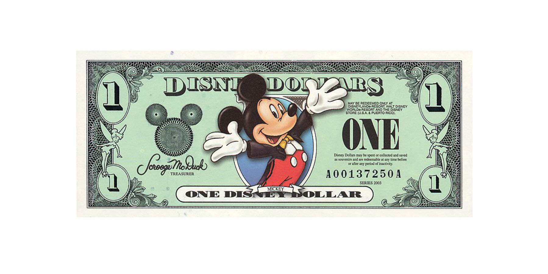 Disney began issuing its own currency in 1987 which could be spent at its theme parks in California and Florida. They can now be spent at its US resorts, on cruise bookings, at US Disney stores and in parts of Disney’s private island Castaway Cay. Change is given in US currency.