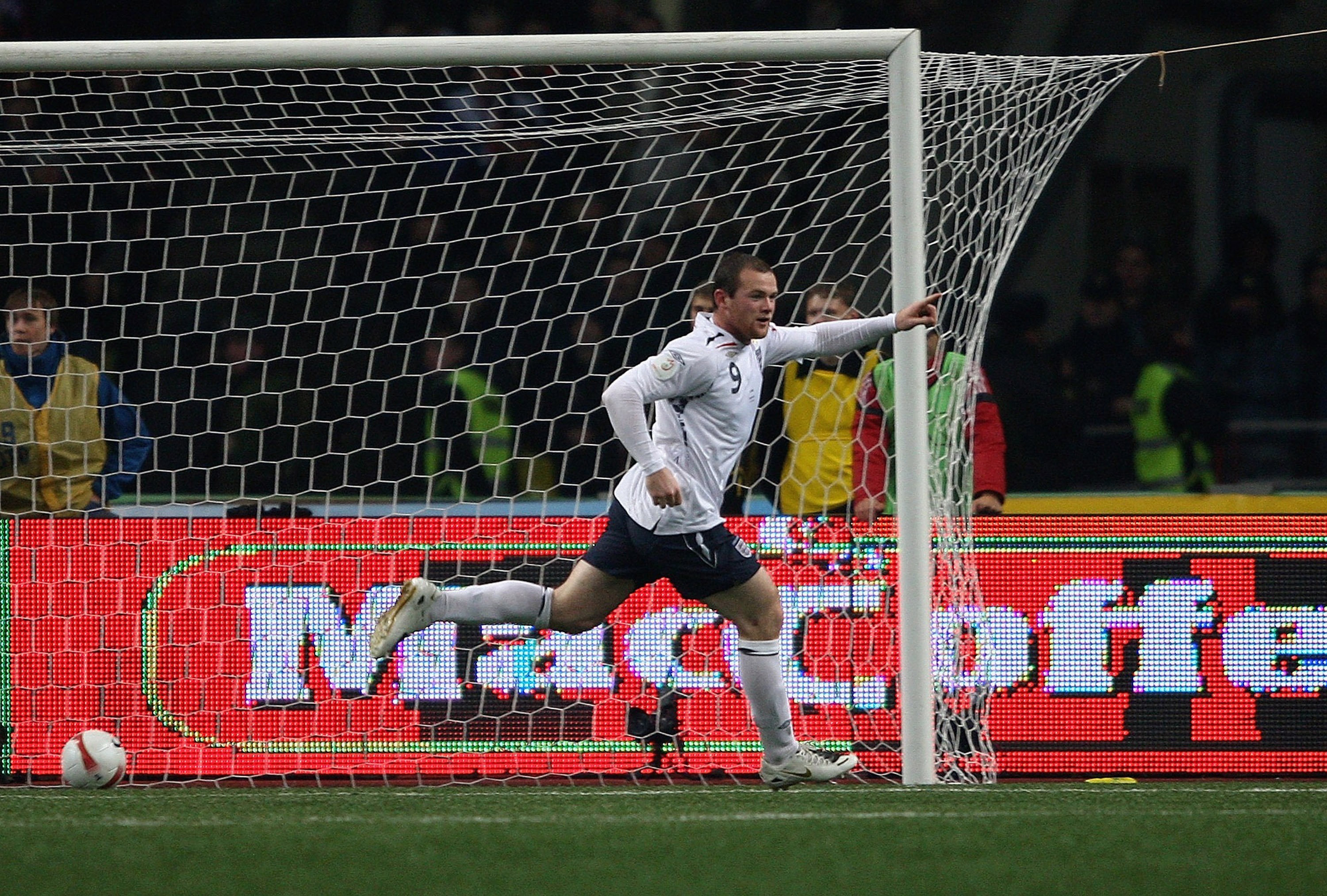 Rooney celebrates after scoring during the Euro 2008 qualifying match against Russia at the Luzhniki Stadium in Moscow, Russia. Final score: England 1-2 Russia.
