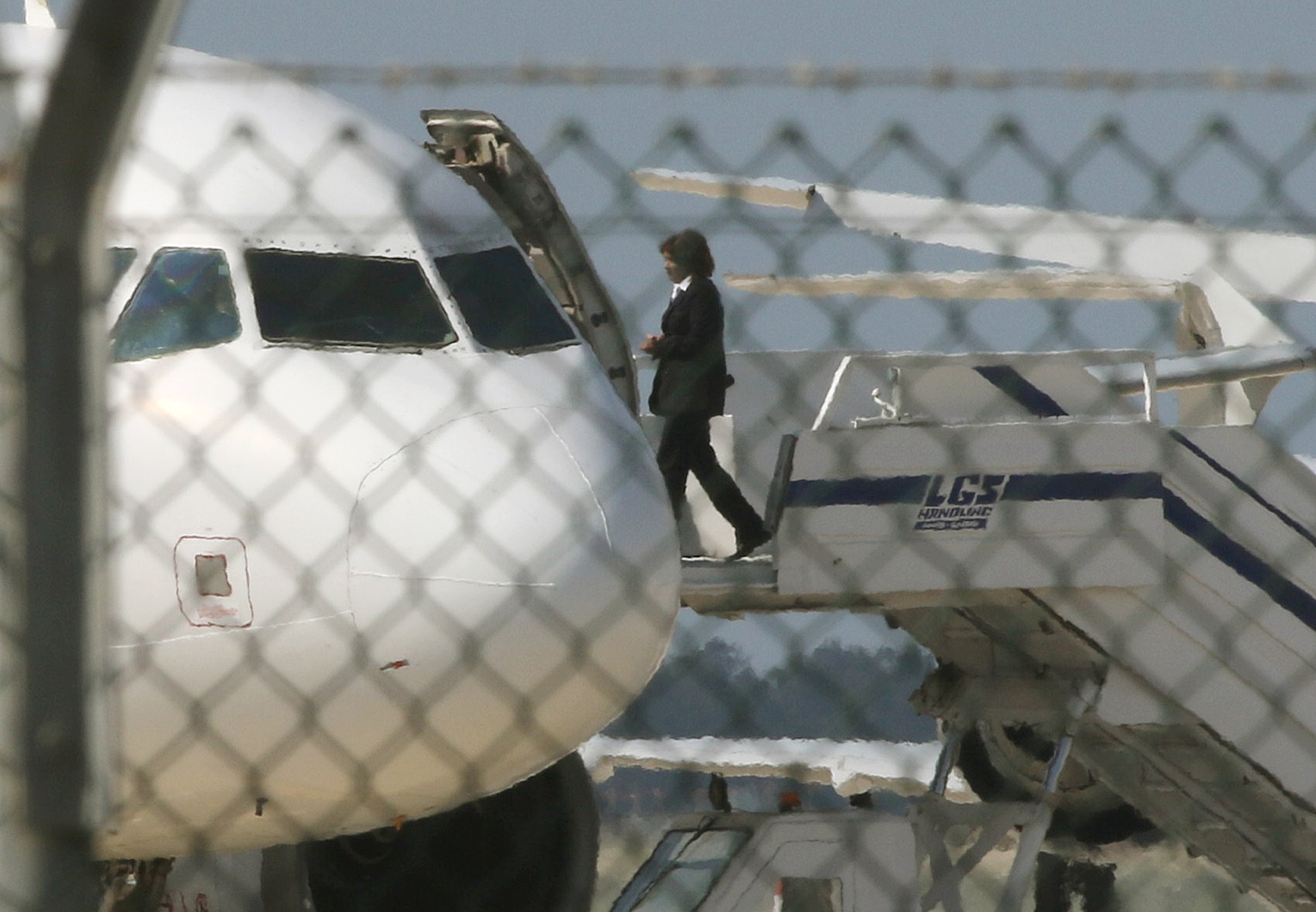 An official boards the plane