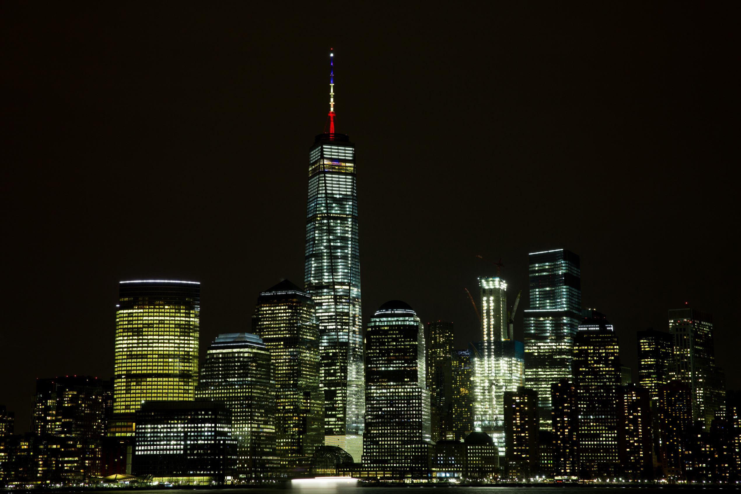 The top of One World Trade Center is lit up with Belgian flag colors in New York City, New York, U.S., on March 23.