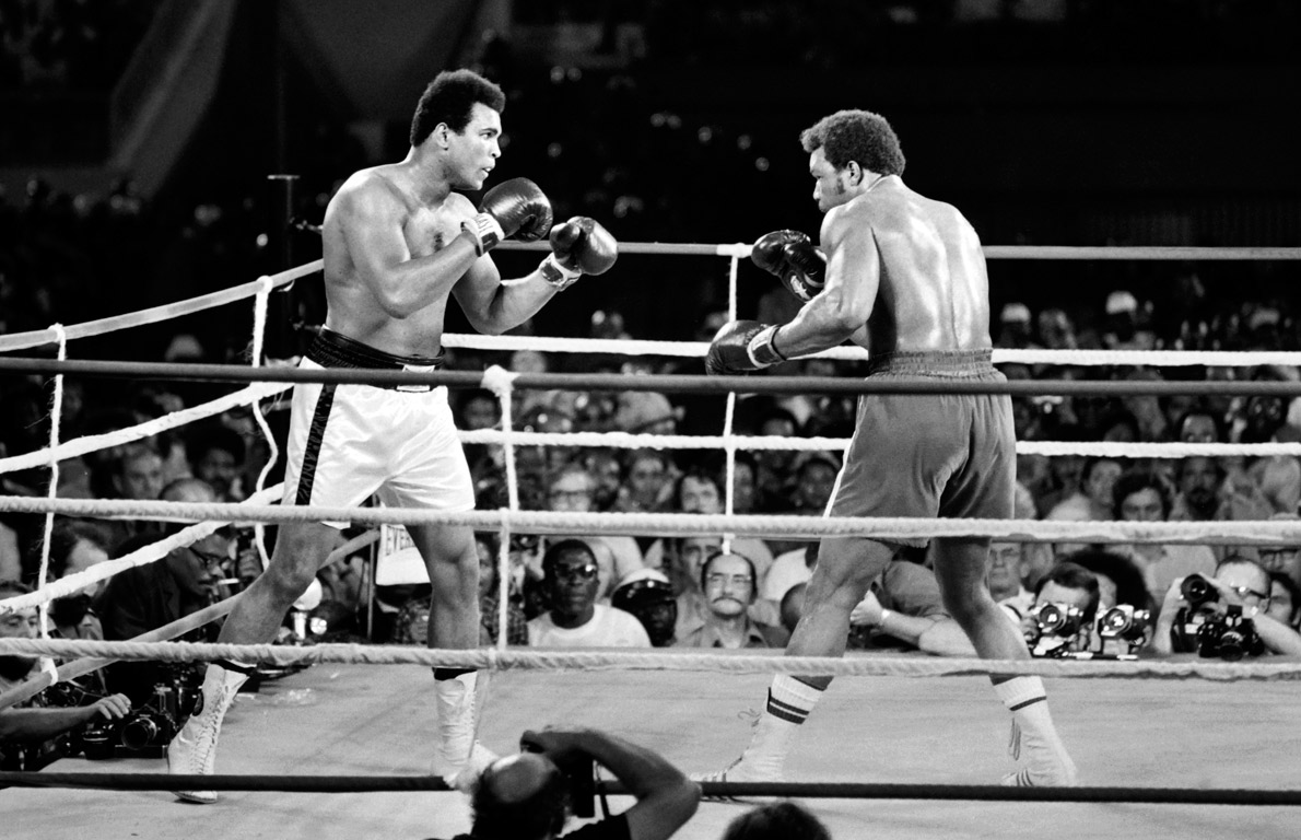 In 1974, he regained the heavyweight title after winning the fight, 'The Rumble in the Jungle,' against George Foreman. (Pictured) Ali and Foreman fight on Oct. 30, 1974, in Kinshasa, Democratic Republic of Congo. Ali won by knocking out the latter in the eighth round.